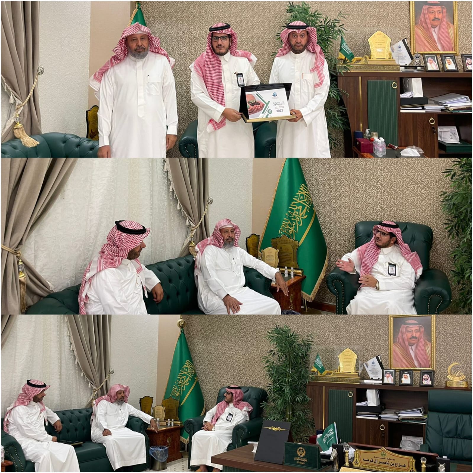 استقبل سعادة محافظ محافظة القرى الأستاذ هزاع بن ناصر بن قرمله يوم الاحد ٢٤-١٠-١٤٤٤هـ ، رئيس مجلس إدارة الجمعية الأستاذ صالح بن سعيد الزهراني والمدير التنفيذي للجمعية الأستاذ محمد بن عبدالله الزهراني، حيث اطلع على برامج وأنشطة الجمعية خلال شهر رمضان والجهود التي بذلت لخدمة المستفيدين من خدمات الجمعية ، وتسلم سعادة المحافظ نسخة من التقرير السنوي لإنجازات وبرنامج الجمعية لعام 2022م .