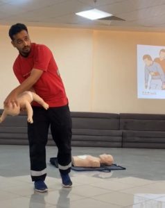 وقدم الدورة الأخصائي الأستاذ/فوزي عوض البلوي وتهدف الى رفع مستوى ثقافة الإسعافات الأولية والتعرف على جميع جوانب الإسعافات والتطبيق العملي .