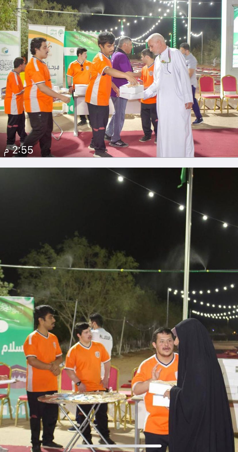 شارك نادي الجوف لذوي الاحتياجات الخاصة بتقديم وجبات بمشاركة أعضاء النادي لضيوف بيت الله الحرام القادمين عبر البر من دولة العراق في مدينة الحجاج بأبو عجرم.