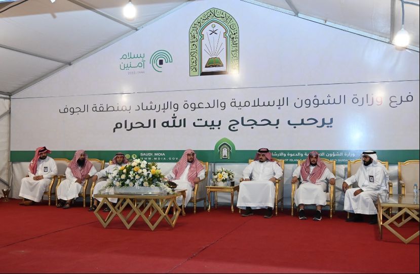 تواجد فرع وزارة الشؤون الإسلامية والدعوة والإرشاد في منطقة الجوف بمدينة الحجاج بأبو عجرم لتوزيع الكتيبات المطبوعة المتخصصة بمناسك الحج و الملصقات الإرشادية على ضيوف الرحمن، انطلاقاً من توجيهات من أمير المنطقة الأمير فيصل بن نواف ليكون للإدارات الحكومية دور في خدمة الحجاج القادمين للمملكة.