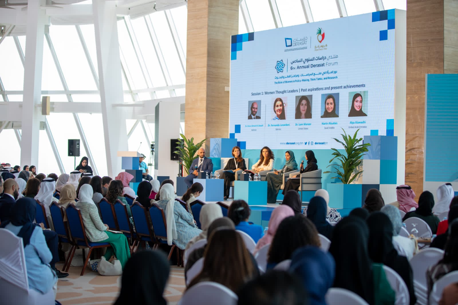 وتضمنت الجلسة الأولى من أعمال المنتدى التي حملت عنوان “قادة الفكر النسائي: تطلعات الماضي وإنجازات الحاضر”، مداخلاتٍ من قادات الرأي في مختلف مجالات البحث العلمي ممن عملن في مراكز الفكر والمؤسسات الحكومية تناولت التحديات والفرص التي تواجه النساء في مختلف القطاعات في المنطقة، تحدث فيها كلٌ من الدكتورة فرناندا الورندوني، رئيسة البرنامج القُطري لبرنامج الأمم المتحدة للمستوطنات البشرية لدى مملكة البحرين، والدكتورة لين منذر، المدير المساعد لتمكين الشرق الأوسط في مؤسسة المجلس الأطلسي، والسيدة حنين السديس، الزميلة الباحثة في مركز الملك فيصل للبحوث والدراسات الإسلامية، والسيدة علياء العوضي، الباحثة ورئيسة الاستشارات في مركز تريندز للبحوث والاستشارات، فيما أدار النقاش الدكتور عُمر أحمد العبيدلي، مدير إدارة الدراسات والبحوث في مركز “دراسات”.