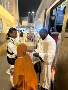 حيث تم اليوم السبت الثامن والعشرين من شهر ذي القعدة الحالي استقبال 226 من ضيوف الرحمن – عبر( 7) حافلات – أقلت الحجاج إلى مكة المكرمة، وقام مركز الخدمة الميدانية 29 والتابع لشركة مطوفي حجاج الدول الأفريقية غير العربية برئاسة سعادة المستشار فيصل بن علي سيف الدين – رئيس المركز باستقبال وفد ضيوف الرحمن بماء زمزم المبارك والحلويات المكية والهدايا والوجبات الساخنة والأناشيد والأهازيج والمجسات الحجازية المفعمة بالود والمحبة.