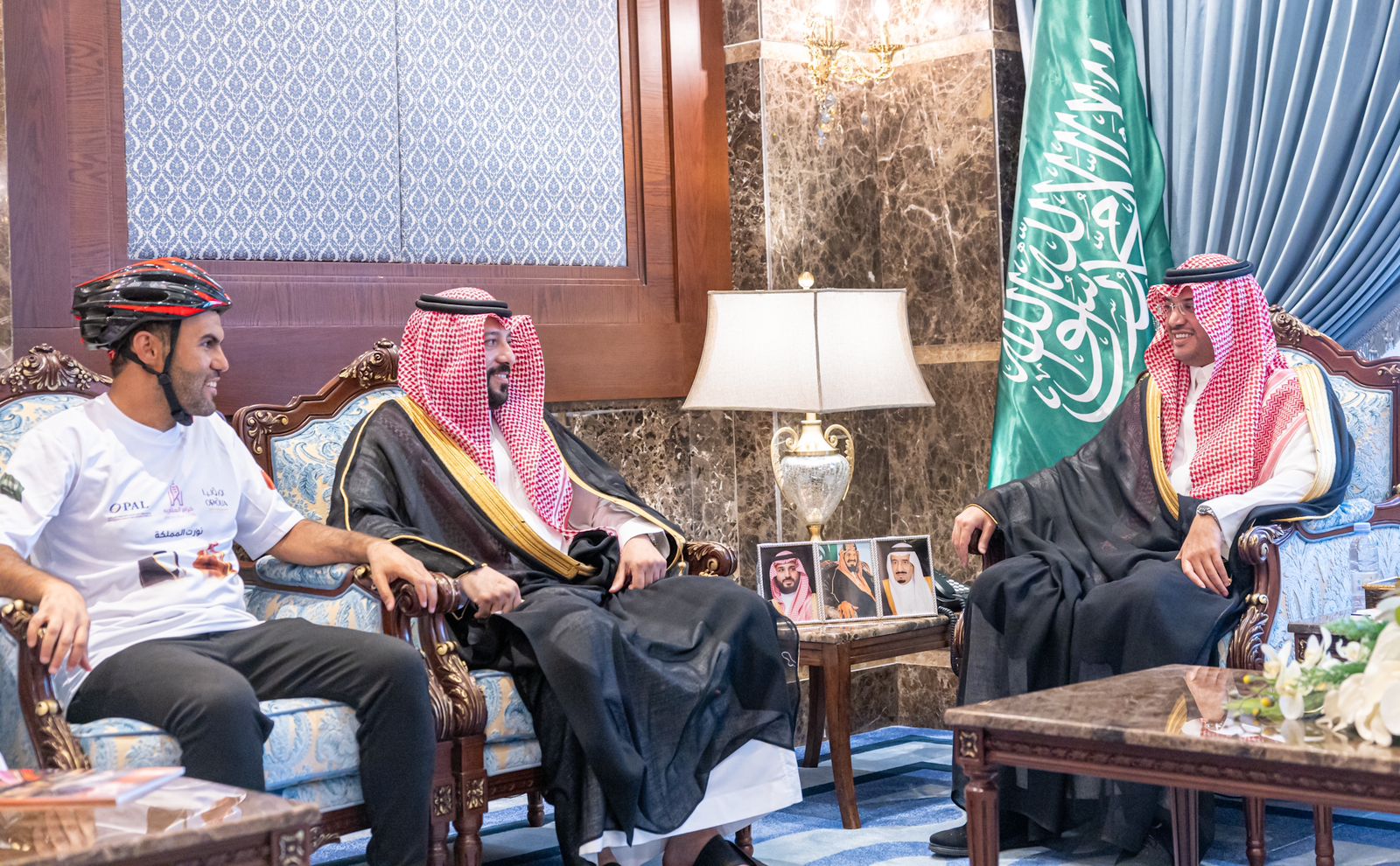 استقبل صاحب السمو الملكي الأمير سعود بن طلال بن بدر محافظ الأحساء بمكتب سموّه بمقر المحافظة اليوم ” الثلاثاء ” الرحالة فهد بن إبراهيم اليحيا والذي يقوم برحلة على الدراجة الهوائية من قاعة مرايا بمحافظة العلا مروراً بالدوادمي والمدينة المنورة وحائل والقصيم والزلفي والمجمعة والرياض والأحساء وتنتهي بدولة قطر تحت شعار ( نورت المملكة ) ، وبحضور مدير مكتب وزارة الرياضة بمحافظة الأحساء الأستاذ تركي بن علي الطريفي