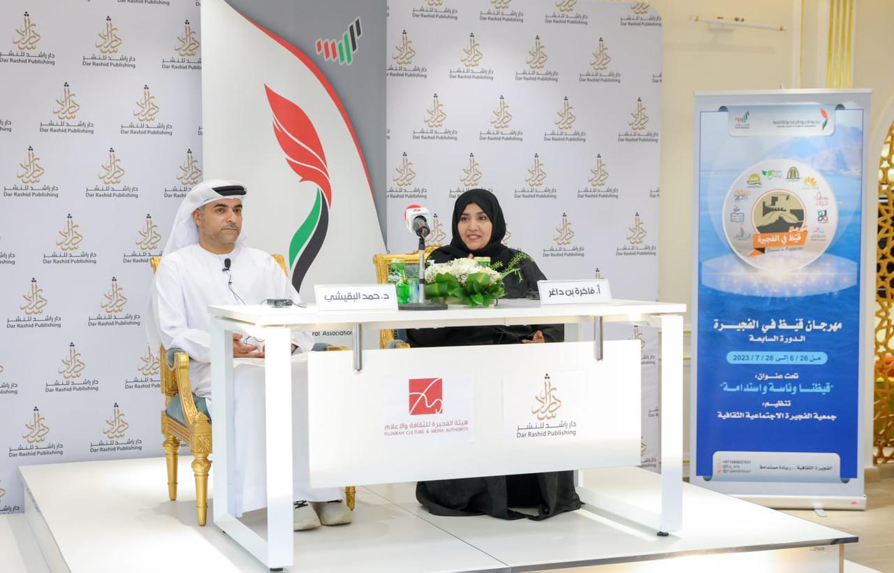 جاء ذلك خلال المؤتمر الصحفي الذي عقدته الجمعية، أمس الخميس، بمقر دار راشد للنشر بالفجيرة للإعلان عن محتوى المهرجان بنسخته السابعة، بحضور سعادة ناصر محمد اليماحي عضو المجلس الوطني الاتحادي، وسعادة خالد الظنحاني رئيس مجلس إدارة الجمعية، وفاخرة بن داغر البلوشي نائب رئيس الجمعية، وهدى الدهماني النائب الثاني لرئيس الجمعية، والدكتور حمد البقيشي المدير التنفيذي للجمعية، والشركاء الاستراتيجيين، وممثلي وسائل الإعلام.