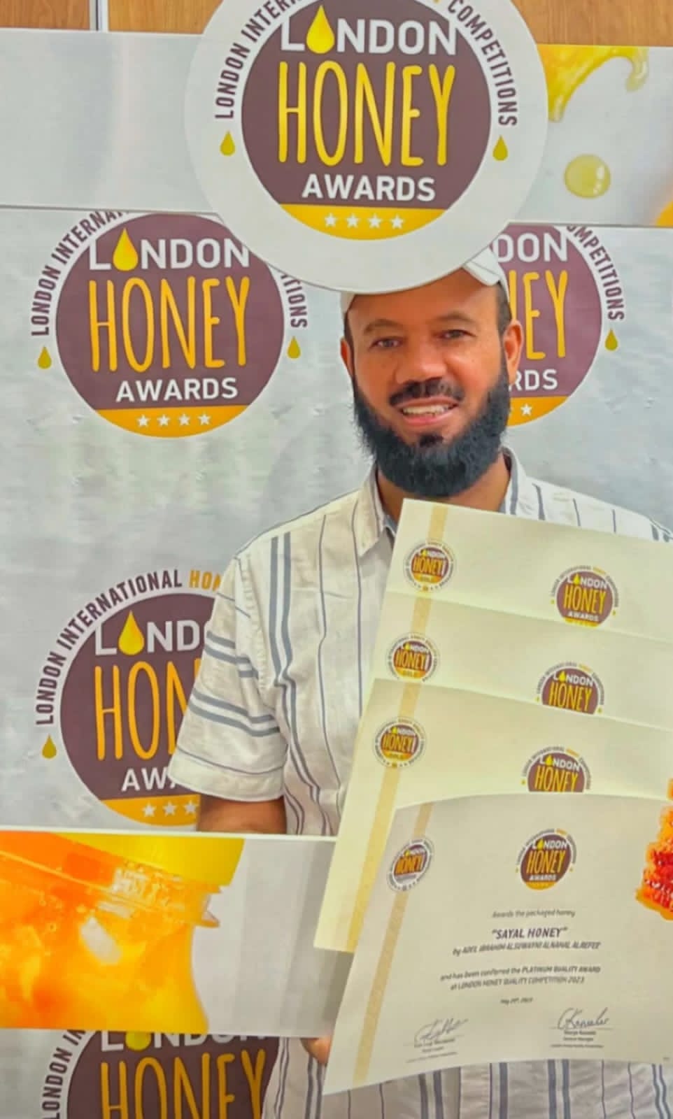 اسرة الصوينع تعبر عن سعادتها بحصول ابنها النحال عادل الصوينع على جوائز عالمية .