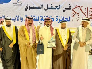 من جهته قدّم شيخ قبيلة “البلاهدة” أهالي قرى وادي “كتنة” بني الحارث، الشيخ عواض بن عايض البلاهدي، شكره إلى أبناء المنطقة من رجالات التربية والتعليم على تنظيم الجائزة التي ستشجع أبناء وبنات المنطقة على التفوق في دراستهم، وهنأ المكرمين ودعاهم إلى مواصلة الجهد والمحافظة على التميز والتفوق.