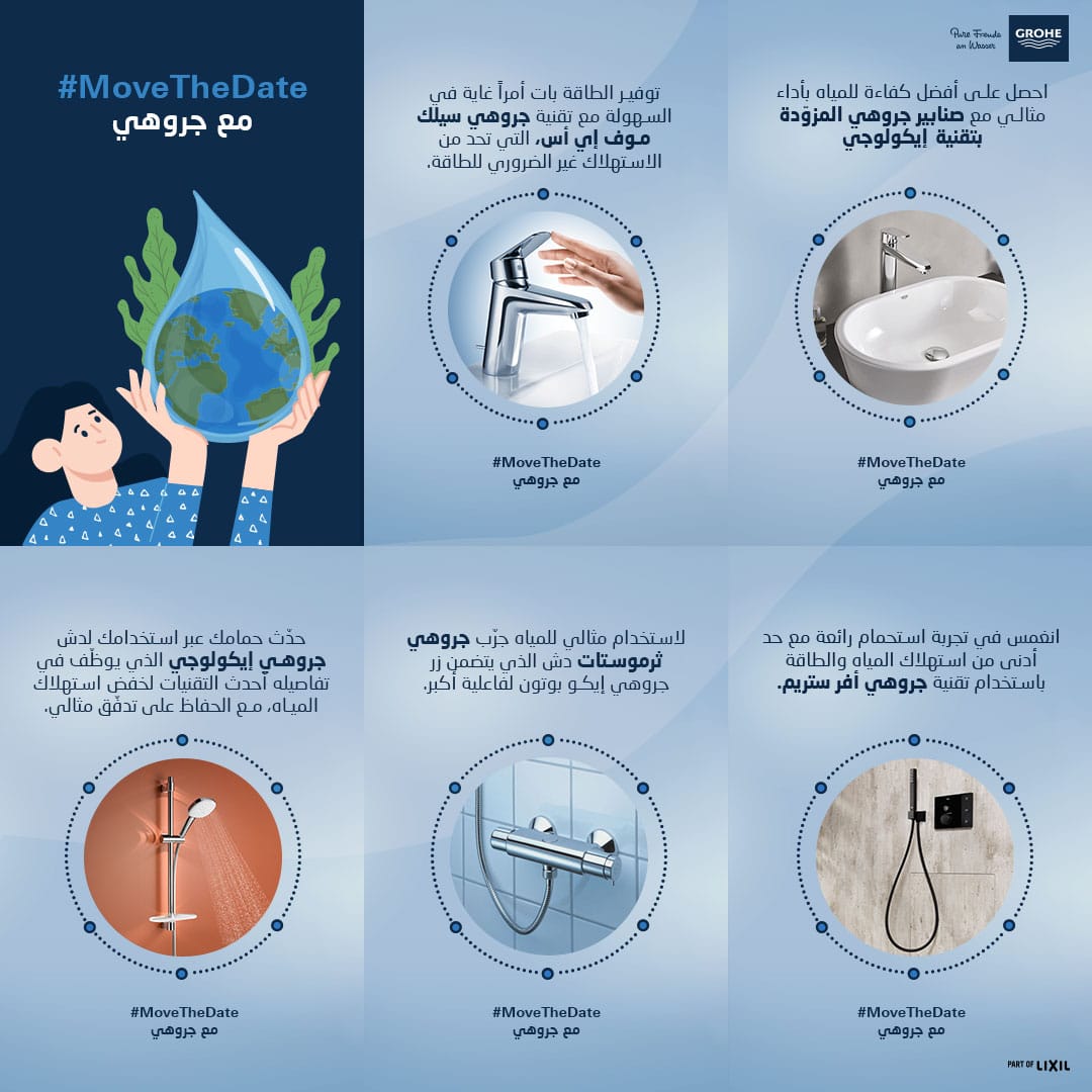 إطلاق مجموعة من منتجات الصنابير والخلاطات الموفرة للطاقة وفقا لأحدث المعايير البيئية والعالمية. حيث تُساهم صنابير الأحواض المزودة بتكنولوجيا GROHE SilkMove ES في الحفاظ على الطاقة بصورة كبيرة.