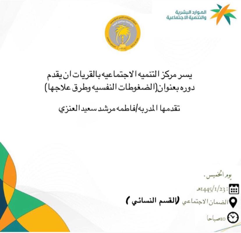 مركز تنمية القريات يقيم دورة بعنوان (الضغوط النفسية وطرق علاجها).