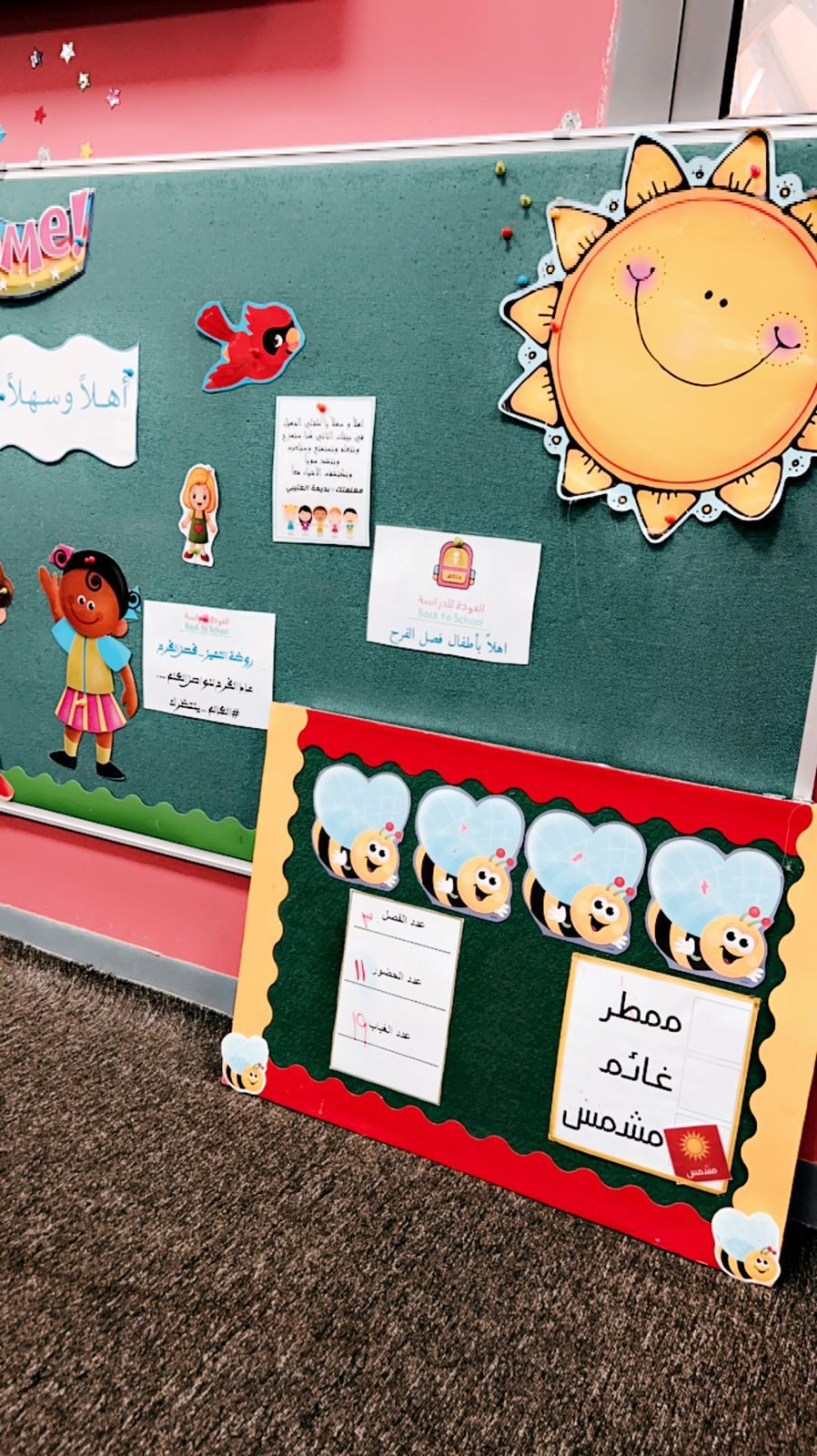 كما تمت تهيئة مرافق المدرسة ووضع استاندات ترحيبية للطالبات وعمل قوائم على شكل قوس من البالونات الملونة في ساحة المدرسة وكذلك تزيين جميع الفصول الدراسية والممرات الداخلية للمدرسة وتزيينها بالملصقات الترحيبية والنشرات الإرشادية المشجعة لتحصيل دراسي متميز .