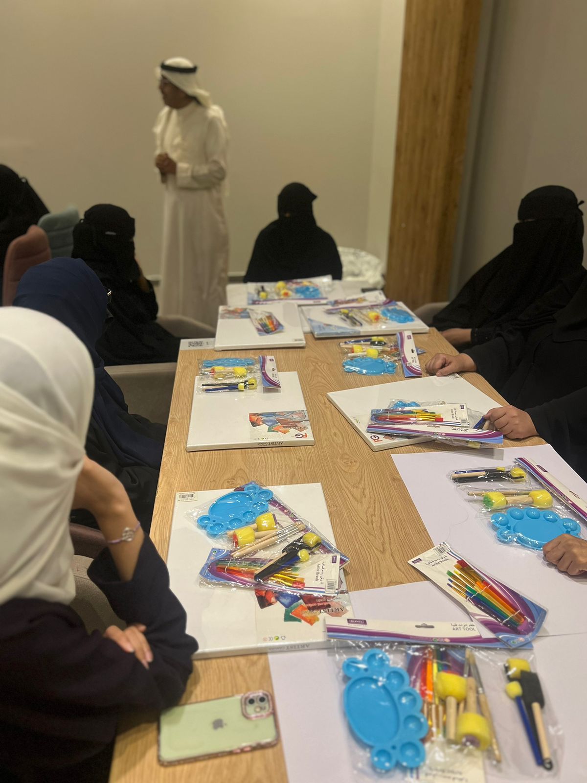 بعد ذلك انطلقت الورشة، وأبحر بهن في أجواء فنية رائعة؛ حيث قام بشرح الألوان، مع ذكِر أقسامها، ثم بيَّن بعد ذلك الأشكال الهندسية، ووضح لهن طريقة رسمها، كما قام بتوزيع الأدوات المستخدمة في الرسم.