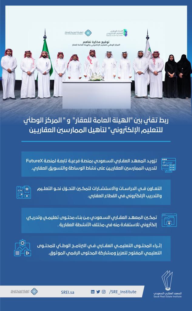 يُذكر أنّ الهيئة العامة للعقار والمركز الوطني للتعليم الإلكتروني قد وقعا مذكرة تفاهم لتعزيز التعاون بين الجهتين في بناء شراكة استراتيجية تواكب المستجدات والمتغيرات التي يشهدها سوق العمل السعودي، من خلال تعزيز التعاون في الدراسات والاستشارات، وإثراء المحتوى التعليمي العقاري في البرنامج الوطني للمحتوى التعليمي المفتوح؛ لتعزيز ومشاركة المحتوى الرقمي الموثوق، وصولاً إلى تحقيق مستهدفات برنامج تنمية القدرات البشرية أحد برامج رؤية المملكة 2030.