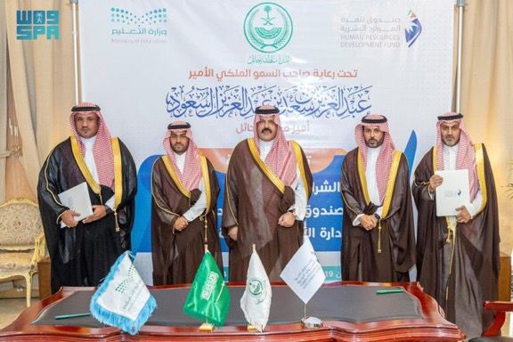 إثر ذلك شهد سمو أمير منطقة حائل وسمو نائبه مراسم توقيع مذكرة الشراكة المجتمعية بين صندوق تنمية الموارد البشرية والإدارة العامة للتعليم بالمنطقة ، بهدف تأهيل وتدريب طلاب وطالبات المنطقة وإكسابهم المهارات والخبرات اللازمة لسوق العمل ، وتعزيز دور الإرشاد المهني بين أوساط الفئات المستهدفة .