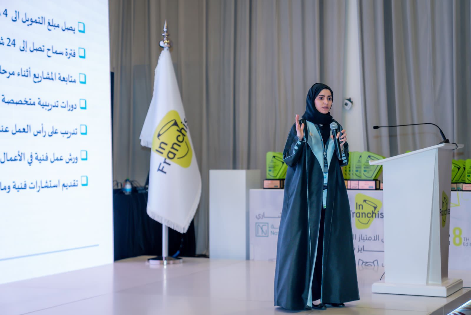 وتناولت أبرز مزايا برنامج الامتياز التجاري المقدم من النبك بحيث تتمثل في 7 مزايا (مبلغ التمويل يصل الى 4 مليون ريال وفترة سماح تصل الى 24 شهرا ومتابعة المشاريع أثناء مرحلتي التأسيس والتشغيل وحل العوائق والمشكلات التي تواجه المستفيدين وتنظيم دورات تدريبية متخصصة في اساسيات الاعمال على ايدي مدربين وتدريب على رأس العمل عند الشركة المانحة للامتياز التجاري وورش عمل فنية في الاعمال التجارية للمستفيدين وتقديم استشارات فنية ومالية وتسويقية للمستفيدين).