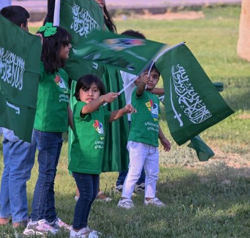 انطلقت اليوم مظاهر الاحتفال باليوم الوطني السعودي الثالث والتسعين في معلم مدينة عرعر “برج المياه” وحديقة مضمار المساعدية