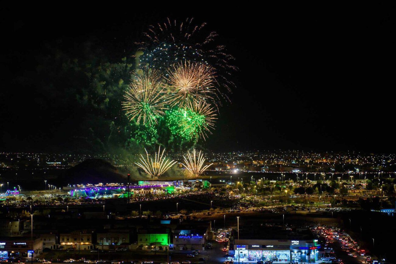 الألعاب النارية تُضيء سماء المدينة المنورة باليوم الوطني الـ93