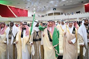 وفي ختام الحفل شارك سمو أمير جازان في أداء العرضة السعودية.