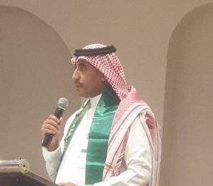 وانطلق الحفل بآيات من الذكر الحكيم ، ثم النشيد الوطني ، ثم توالت فقرات الحفل الوطنية ، تلاها كلمة لسعادة مدير عام الفرع الأستاذ / نايل عبدالعزيز الرويلي هنأ فيها حكومتنا الرشيدة وشعب المملكة بمُناسبة اليوم الوطني 93 .