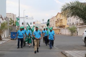 تميزت المسيرة بسقف عال من بث لروح الحيوية و النشاط، و التي تماهت مع فرحة الجميع بمناسبة يوم الوطن ، “يوم السعودية الخضراء 93”.