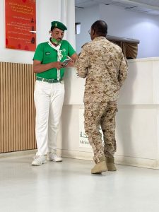 مدير التنسيق الطبي بمستشفى صامطة العام يرسم لوحة وطنية بمشاركته للمرضى والمراجعين فرحة اليوم الوطني