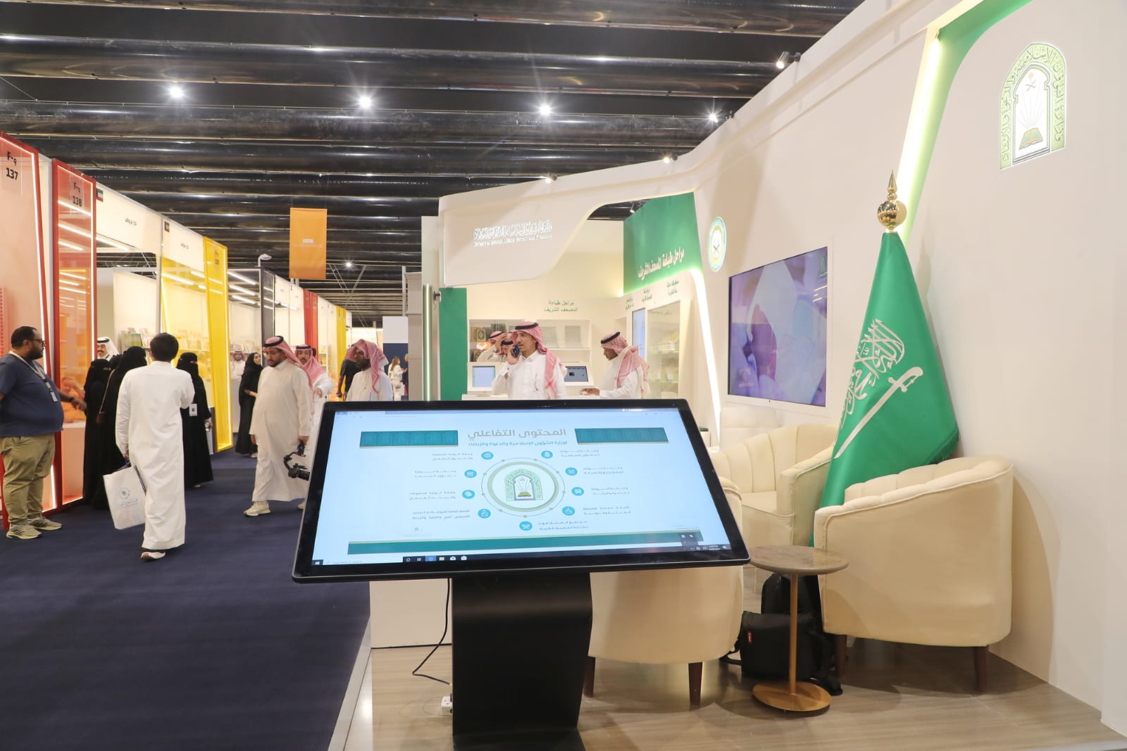 كما يتضمن الجناح أيضاً عرض لشاشات المكتبة الإسلامية الإلكترونية الرقمية التفاعلية، التي وضعت لزوار المعرض للاستفادة من العلوم الشرعية بأحدث الأساليب التقنية، إضافة لعرض مخطوطات مكتبة مكة المكرمة، وكذلك عرض للمحتوى التفاعلي لأعمال الوزارة، في حين من المقرر توزيع 10.000 آلاف نسخة من المصاحف الشريفة من إنتاج مجمع الملك فهد لطباعة المصحف الشريف بالمدينة المنورة كهدية لرواد جناح الوزارة خلال فترة المعرض.