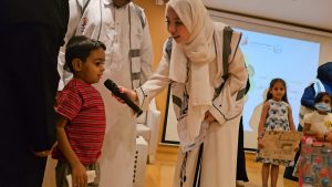 واستحسن الأطفال الفعالية وقابلوها بترحيب غامر، ارتسمت على وجوههم الفرحة والابتسامة وشاركوا ببراءتهم فرحة الوطن، ورفعوا شعارات المحبة للوطن والسعادة بيومه الوطني.