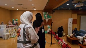 فريق نخبة الإحسان التطوعي بقباء يحتفي باليوم الوطني مع أطفال مركز الكلى في مستشفى الأطفال بمدينة الملك سلمان الطبية