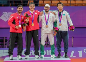 ويمثل الأخضر في منافسات الغد، رمزي الدهامي الحاصل على ذهبية “غوانزو2010” وبرونزية “جاكرتا2018″، وعبدالله الشربتلي الفائز بذهبية “إنشون2014″، وعبدالرحمن الراجحي.