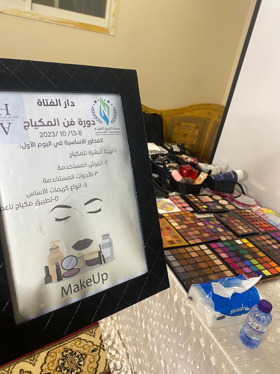 وتم تنفيذ عدد من الدورات الخاصة بالفتيات منها دورة تصفيف الشعر ودورة فن المكياح ودورة التشقير للمدربة حنان العليق.