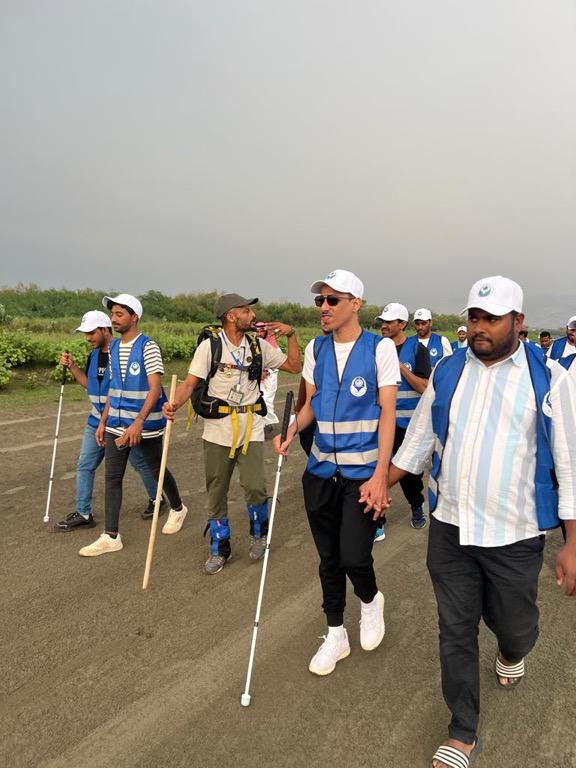 نظم فرع وزارة الرياضة بجازان والاتحاد السعودي للتسلق والهايكنج بالتعاون مع جمعية الثريا للمكفوفين بجازان مساء اليوم الأحد الموافق 15/10/2023م، بمناسبة اليوم العالمي للعصا البيضاء برنامج الهايكنج للمكفوفين بعنوان (حيوية الرياضي) وقد ابتدأ البرنامج في نقطة التجمع باستراحة النجمة الذهبية بالترحيب؛ إذ رحبت جمعية الثريا بالضيوف والمشاركين من المكفوفين الذين بلغ عدد 20 كفيف وكفيفة وممثلي فرع الوزارة للرياضة والاتحاد السعودي للتسلق والهايكنج ثم استمع الحضور لتلاوة خاشعة من آيات الذكر الحكيم، وتم تعريف الحاضرين بأسس التعامل مع المكفوفين الذي قدمته الأخصائية الكفيفة الدكتورة شادن عليوات، ثم تم تقديم البرنامج المصاحب (لا تترك أثر بيئي) الذي قدمه مرشد الهايكنج الأستاذ عبدالله رفاعي،وأخيراً كرمت الجمعية الجهات المشاركة في البرنامج، وبعد ذلك سار المكفوفين في وادي العارضة بالعصا البيضاء محتفلين باليوم العالمي للعصا البيضاء الذي يحتفل العالم اجمع به تشجيعاً لكل كفيف باستخدام العصا البيضاء في شؤون حياتهم اليومية، وقد انتهى البرنامج بعودة المشاركين من المكفوفين إلى نقطة التجمع حاملين في جعبتهم أجمل اللحظات التي قضوها جنباً إلى جنب مع أقرانهم من المبصرين.