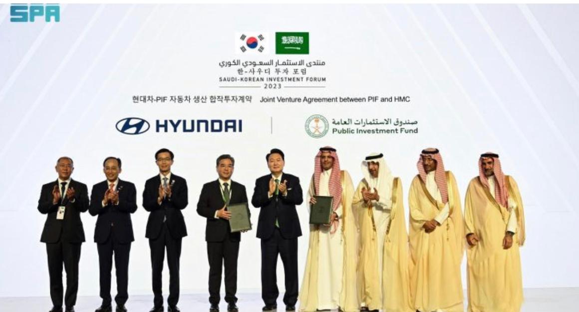 الاستثمارات العامة وشركة هيونداي موتور يوقعان اتفاقية مشروع مشترك لإنشاء مصنع جديد للسيارات في المملكة