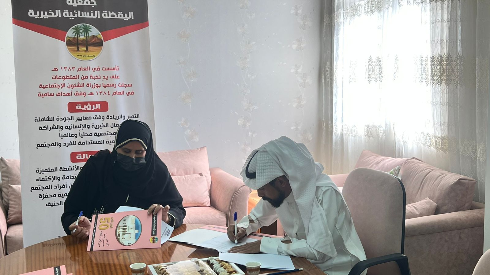 وقع الاتفاقية من الجانبين رئيس نادي كيان الإعلامي أ/ جريس الحارثي ورئيسة مجلس الإدارة بجمعية اليقظة الدكتوره مشاعل القثامي .