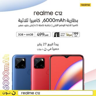 وبمناسبة الاطلاق أعلنت ريلمي عن تقديم عرض حصري في متجر “نون”، حيث سيحصل كل من يشتري جهاز C12 على سوار ريلمي مجانا وذلك عند انطلاق عملية البيع بتاريخ 27 يناير 2021.