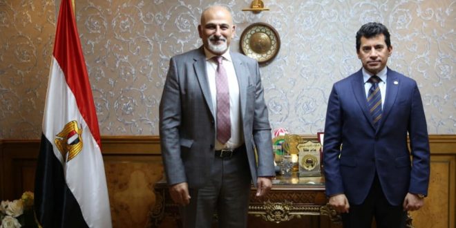 التقي الدكتور أشرف صبحي وزير الشباب والرياضة المصري بالفنان السوري جمال سليمان، لبحث إطلاق مبادرة للحفاظ على اللغة العربية والهوية الوطنية، والثقافة المصرية في نفوس الأجيال الجديدة، وذلك بديوان عام الوزارة، بحضور الدكتورة عزة الدري رئيس الإدارة المركزية للطلائع بوزارة الشباب والرياضة.
