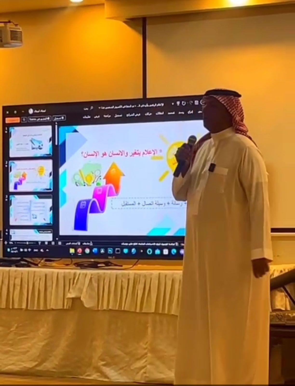 حضر اللقاء مجموعة من الرجال والنساء المهتمين بالشأن الرياضي وفي نهاية المحاضرة تم تكريم الدكتور – فهد من الأستاذ – سمير الحجيلي قائد فريق الأمل ميديا.