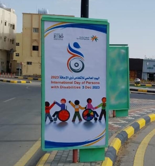 وقد تمت المشاركة بوضع لوحات توعوية عن الإعاقة في الميادين العامة والشوارع الرئيسية بالمنطقة ، وقد شكر الأستاذ. سعود الجباب الفريق القائم على هذه الحملة.
