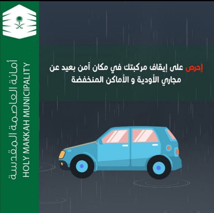 تأتي هذه التوجيهات في إطار حرص الأمانة على سلامة الجميع وتوفير بيئة آمنة لأهالي العاصمة المقدسة وزوارها، وتهيب الأمانة بالجميع بضرورة الالتزام بتلك الإرشادات والتوجيهات والالتزام بالسلامة الشخصية أثناء موسم الأمطار، والتعاون مع الجهات المعنية، حفاظاً على الأرواح والممتلكات.