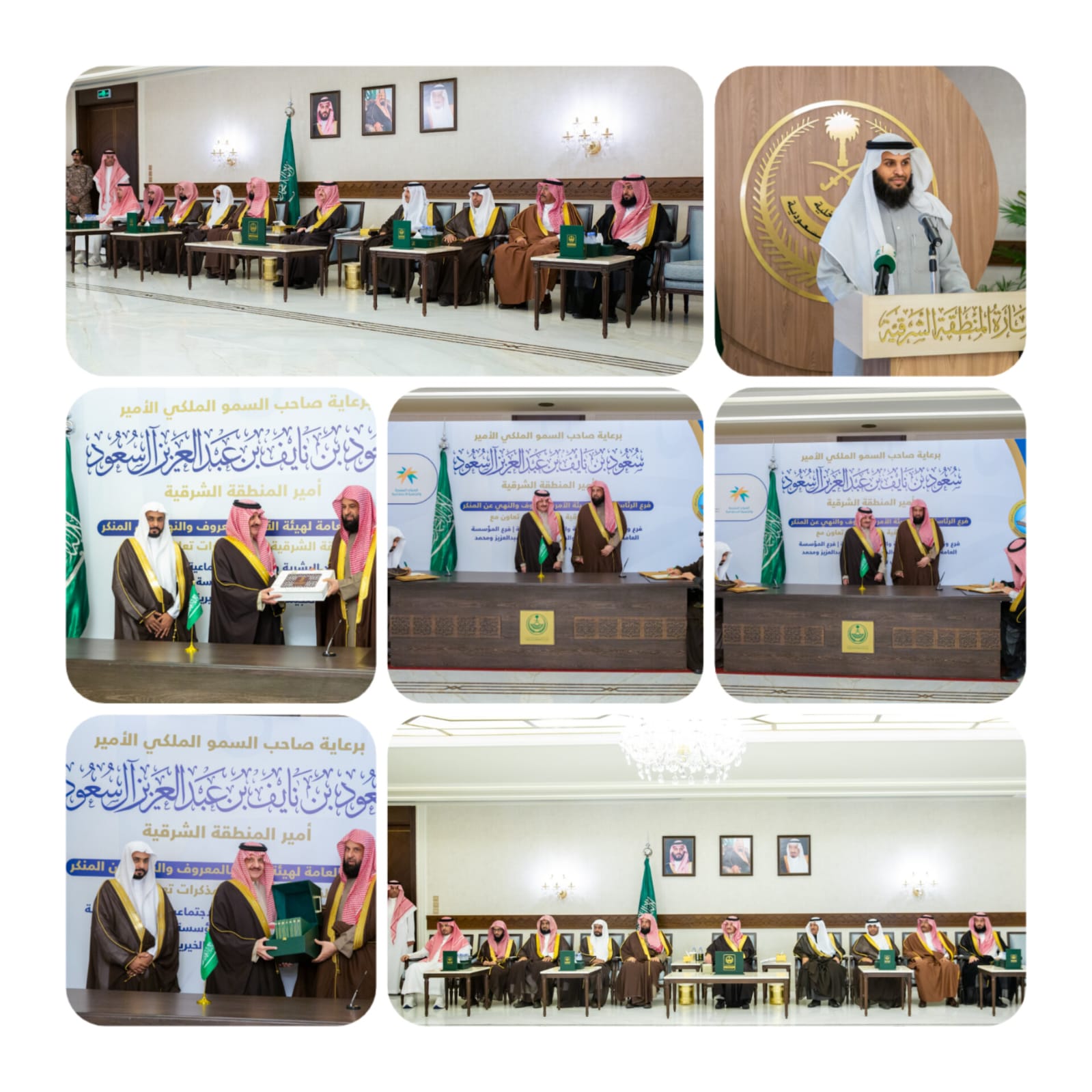 رعى صاحب السمو الملكي الأمير سعود بن نايف بن عبدالعزيز أمير المنطقة الشرقية بديوان الإمارة اليوم الاثنين ، وبحضور معالي الرئيس العام لهيئة الأمر بالمعروف والنهي عن المنكر الشيخ الدكتور عبدالرحمن بن عبدالله السند، توقيع فرع الرئاسة العامة لهيئة الأمر بالمعروف والنهي عن المنكر بالمنطقة الشرقية، ثلاث مذكرات تعاون مع فرع وزارة الموارد البشرية والتنمية الاجتماعية بالمنطقة الشرقية، وفرع المؤسسة العامة للتدريب التقني والمهني بالمنطقة، ومؤسسة عبدالعزيز و محمد العجيمي وعائلتهما الخيرية.