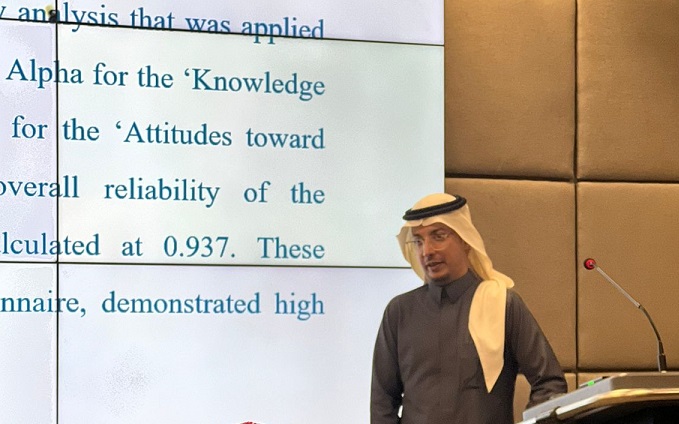 والتي أشرف عليها من لجنة التحكيم المشرف رئيسي أستاذ مشارك الدكتور عبدالرحمن بن سعيد الشهري ، والبروفيسور أستاذ دكتور قسم تمريض صحة المجتمع عمر بن غازي بكر ، ووكيل الكلية للشؤون الأكاديمية أستاذ مساعد الدكتورعلي بن محمد كريري.