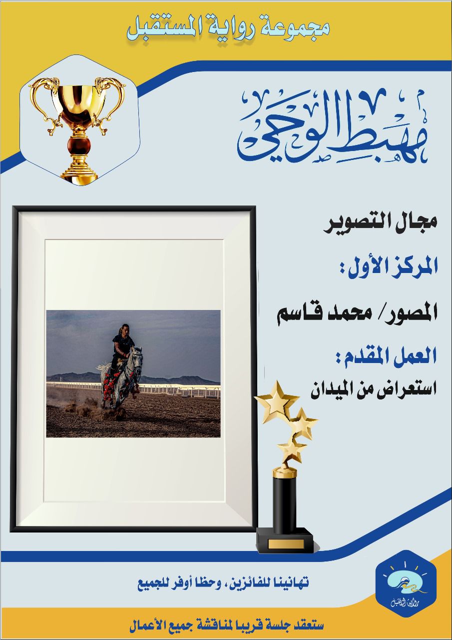مع انطلاقة العام الجديد 2024 ، حصل المصور العالمي محمد قاسم محمد عبداللطيف على المركز الأوّل في مجال التصوير في “مسابقة “مهبط الوحي ، والتي أقيمت على شرف “مجموعة رواية المستقبل” ، بمكة المكرمة.