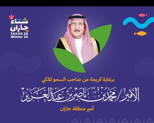 برعاية كريمة من صاحب السمو الملكي الأمير محمد بن ناصر بن عبدالعزيز أمير منطقة جازان ندعوكم لحضور حفل افتتاح ‎شتاء جازان24  ، وذلك يوم الخميس 4 يناير بالمركز الحضاري في تمام السادسة مساء.