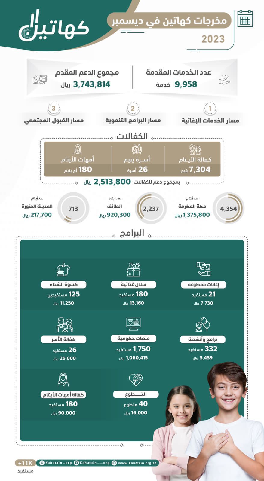 في ختام عام 2023.. 3 ملايين ونصف قدمتها جمعية “كهاتين” للأيتام وأسرهم في شهر ديسمبر