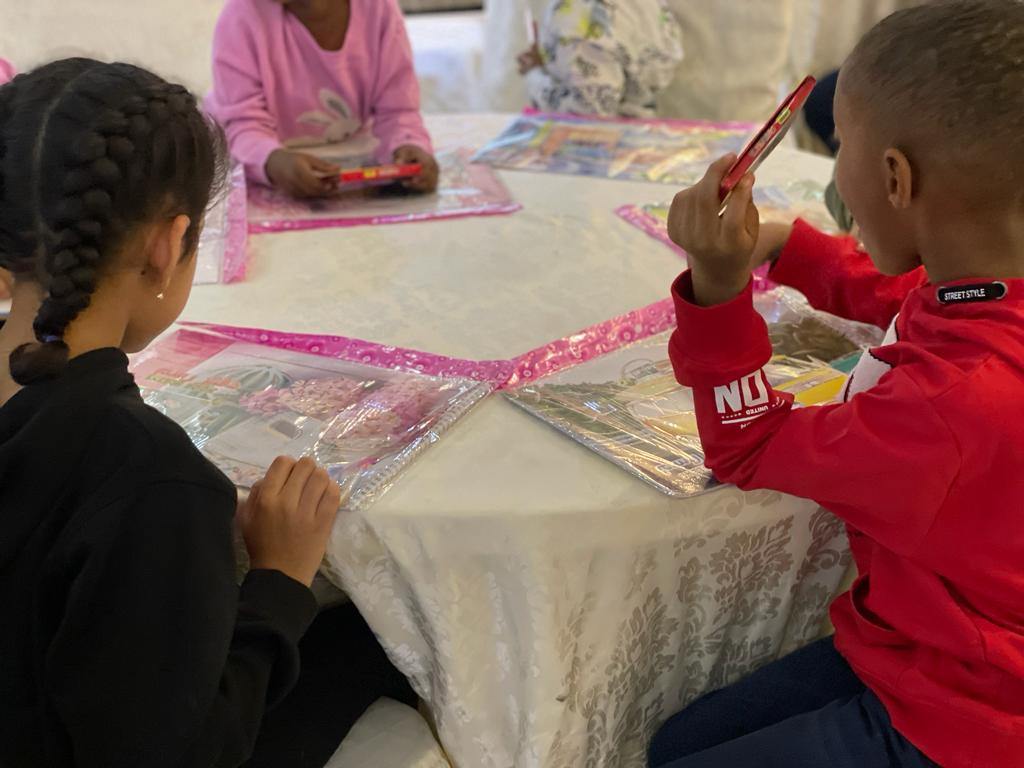 قدمتا الورشة فاتن الحجي و حوراء الشعلة اللاتي وجهتا من خلالها الأطفال الى تقنيات استخدام الألوان الشمعية لإظهار الرسومات بأفضل صورة .