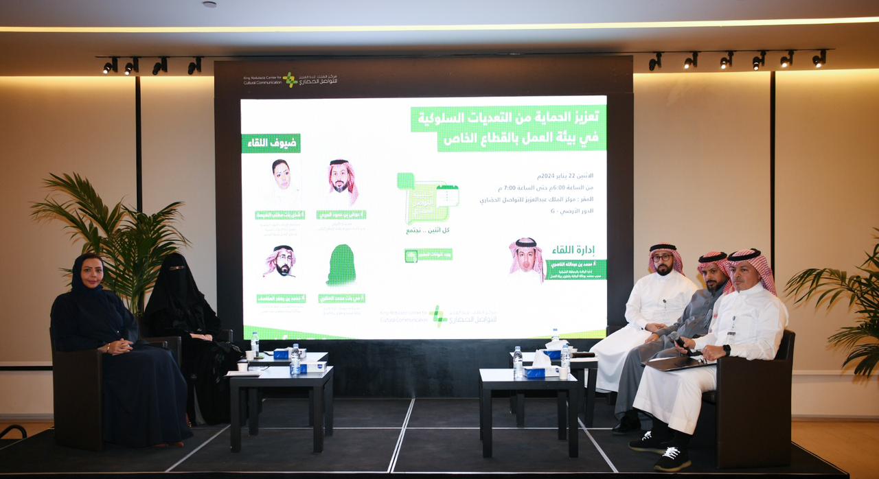 استعرضت اثنينة التواصل التي نظمها مركز الملك عبدالعزيز للتواصل الحضاري ، بالتعاون مع وزارة الموارد البشرية والتنمية الاجتماعية “تعزيز الحماية من التعديات السلوكية في بيئة العمل بالقطاع الخاص “، وذلك مساء الإثنين، 10رجب 1445هـ، الموافق 22 يناير 2024، بمقر المركز بالرياض.