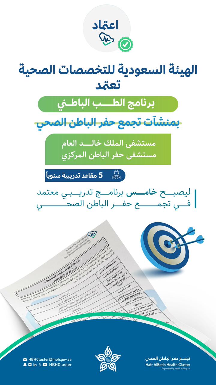 التخصصات الصحية تعتمد برنامج الطب الباطني لتجمع حفر الباطن الصحي