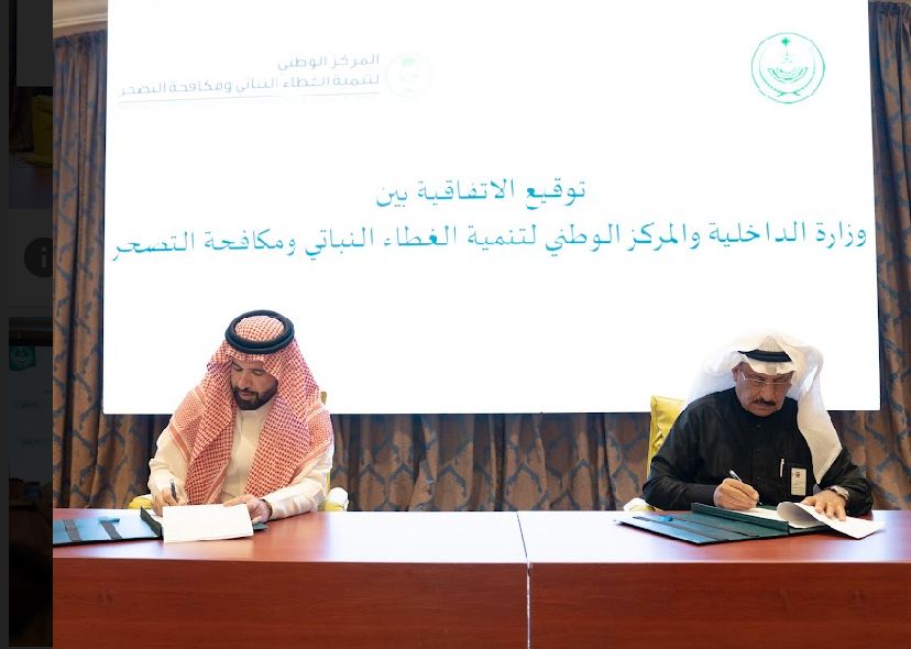 وقع المركز الوطني لتنمية الغطاء النباتي ومكافحة التصحر مذكرة تفاهم مع وزارة الداخلية لتعزيز التعاون المشترك والعمل التكاملي بين الطرفين، لزيادة الغطاء النباتي من خلال أعمال التشجير في 476 موقعا مختارة في كافة المناطق، تفعيلاً للإجراءات والتدابير اللازمة للحفاظ على النظام البيئي في المملكة.