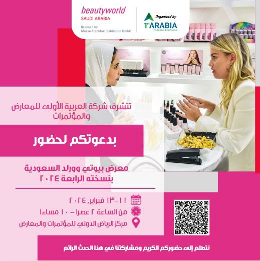 بحضور صاحب السمو الملكي الأمير تركي بن محمد بن ناصر بن عبدالعزيز آل سعود مدير عام العلاقات الدولية بوزارة الصناعه والثروة المعدنيه وصاحبة السمو الأميرة نوره بنت سعود بن مقرن آل سعود ، تفتتح فعاليات معرض بيوتي وورلد السعودية، يوم الأحد القادم 11فبراير في مركز الرياض الدولي للمؤتمرات والمعارض.