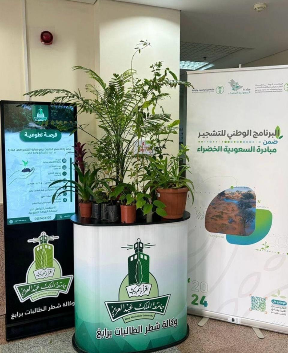 نفذ مكتب وزارة البيئة والمياه والزراعة بمحافظة رابغ بالتعاون مع فرع جامعة الملك عبدالعزيز، شطر الطالبات والمركز الوطني لتنمية الغطاء النباتي ومكافحة التصحر، حملات التشجير التطوعية والتي بدأت بتوزيع الشتلات وزراعتها في فناء الجامعة.