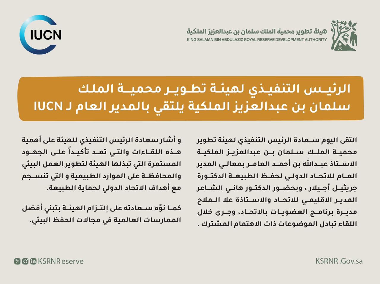 الرئيس التنفيذي لهيئة تطوير محمية الملك سلمان يلتقي المدير العام للاتحاد الدولي لحفظ الطبيعة