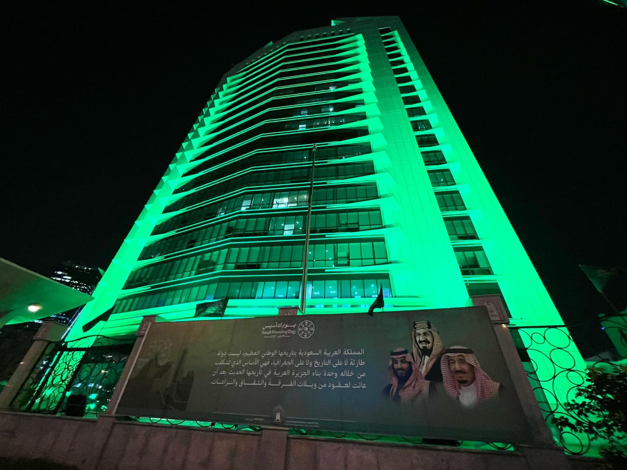 وتوشحت الوزارة باللوحات التي تواكب الذكرى بمقرها في مدينة الرياض، وعبر مباني فروعها بمناطق المملكة، كما جهزت أروقت الوزارة وفروعها بالشاشات التفاعلية والتي تعرض تصاميم وبروشورات تحمل كلمات تواكب الذكرى وتحاكي تاريخ التأسيس، وأيضاً الكلمات الخالدة لقادة المملكة.