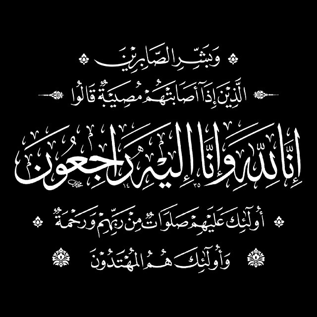 زوجتي الغالية وأبنائي وأنسبائي الكرام ، أعظم الله أجركم وأحسن الله عزائكم ورحم الله فقيدكم وغفر له وأسكنه فسيح جناته، وإنا لله وإنا إليه راجعون ، والحمد لله رب العالمين